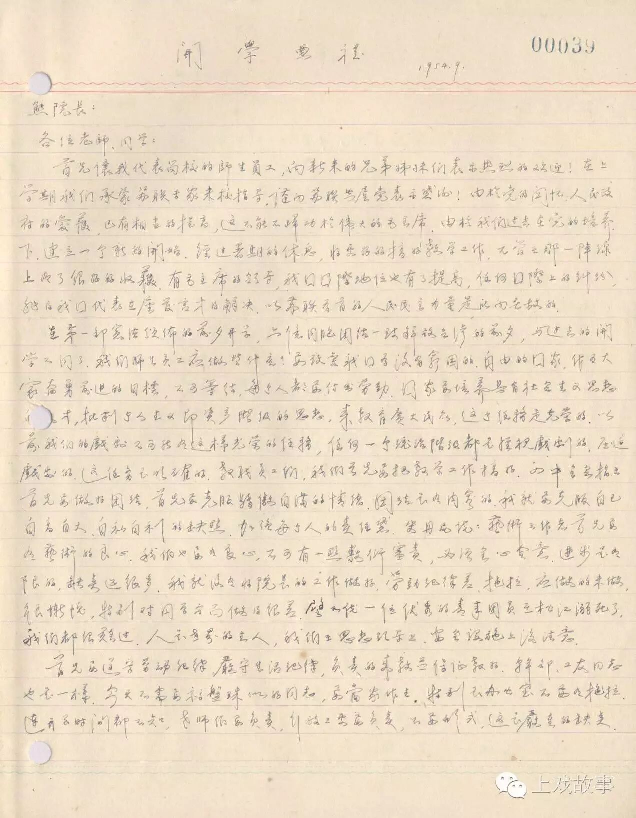 建校两年后,全体师生的数量并没有我们现在那么多,院系也并不那么齐全。我们的学校没有那么多的学生,但是从这里走出去的每一个学生都会骄傲地告诉别人,自己是上戏人。那些专心戏剧的前辈们,在这里成就了人生,为中国戏剧事业的发展、为培育戏剧人才贡献了一份心力。