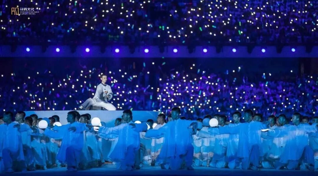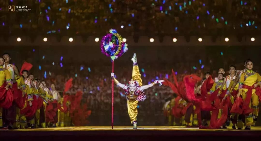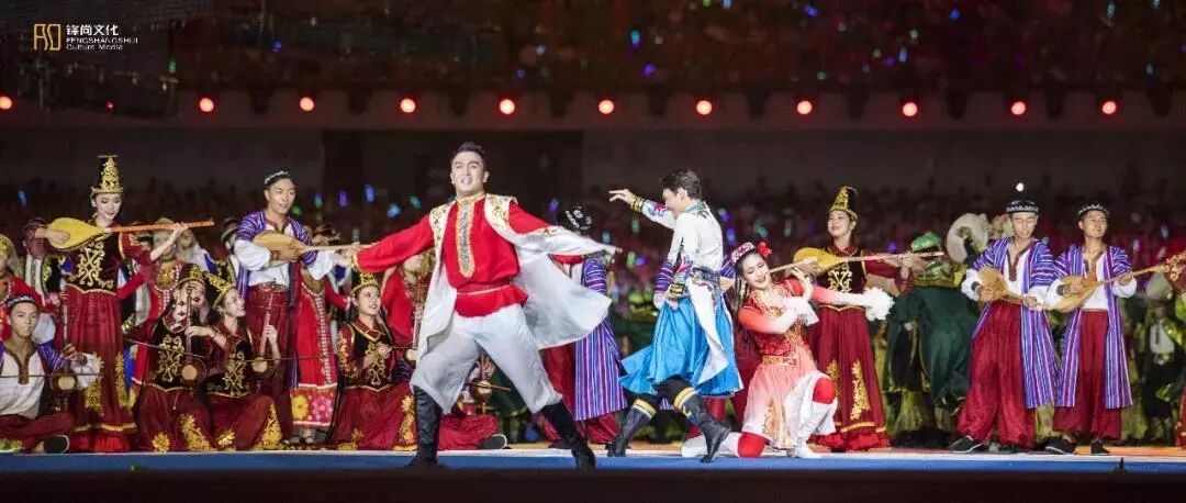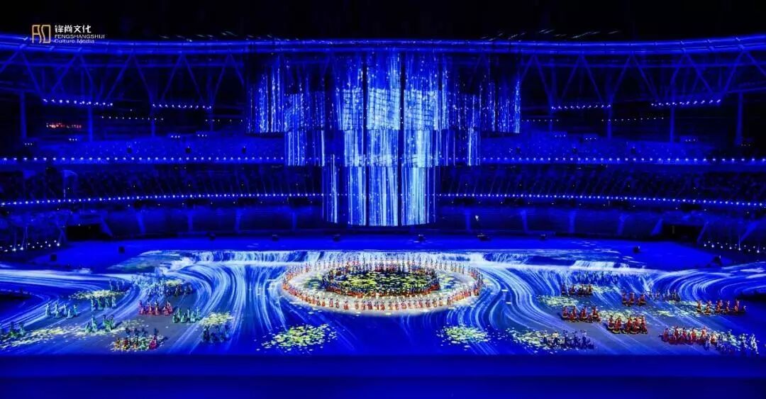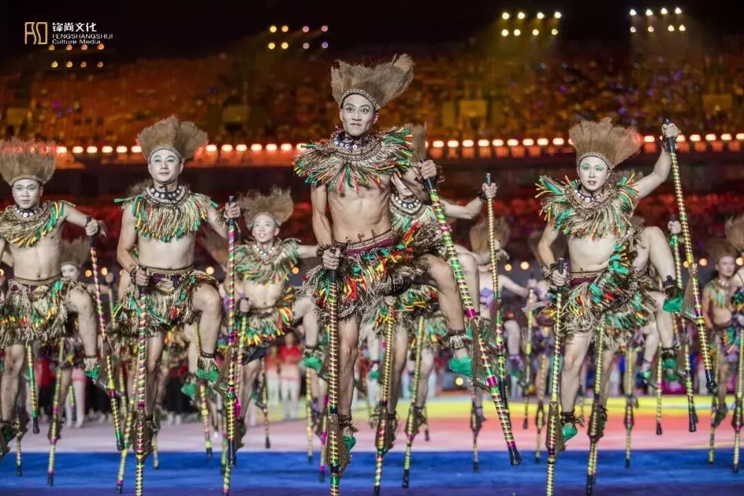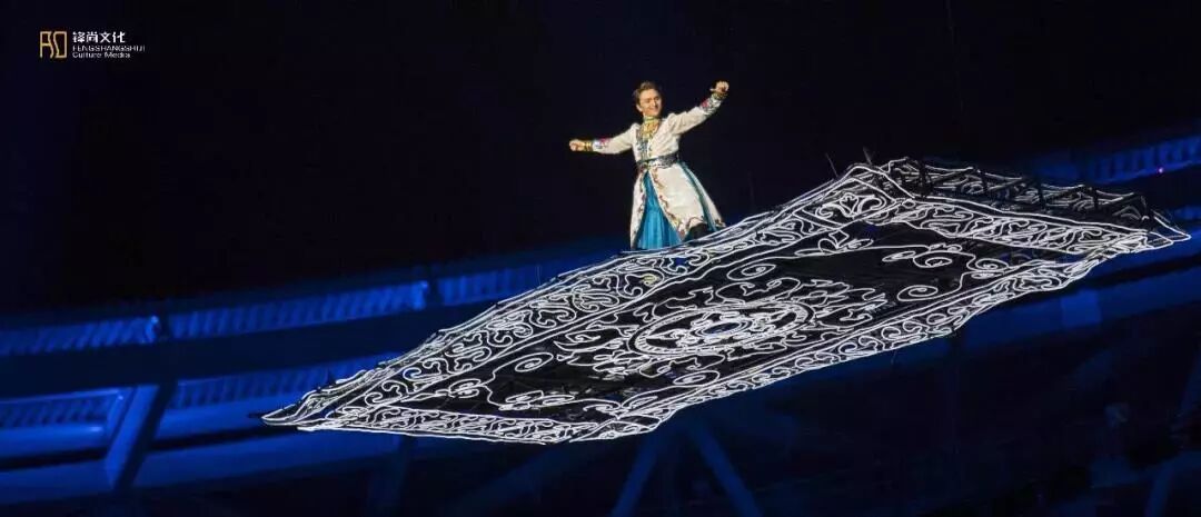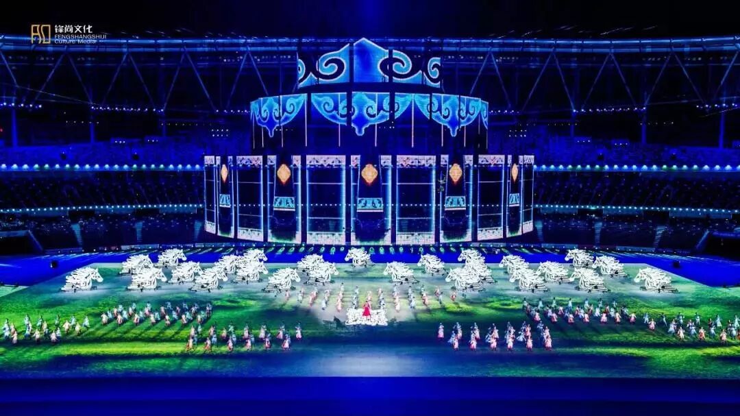 围绕此次运动会开闭幕式所要呈现的主题与内容,在舞台设计方面,【锋尚文化】的主创团队巧妙构思。威亚数控技术让演员的登场方式别具特色,维吾尔族舞蹈家踏着飞毯从空中悄然落下;藏族背鼓从空中而来,众人绕鼓而舞;脚踩平衡车的演员在场地中穿梭……新技术、新手段为观众带来全新视听体验。