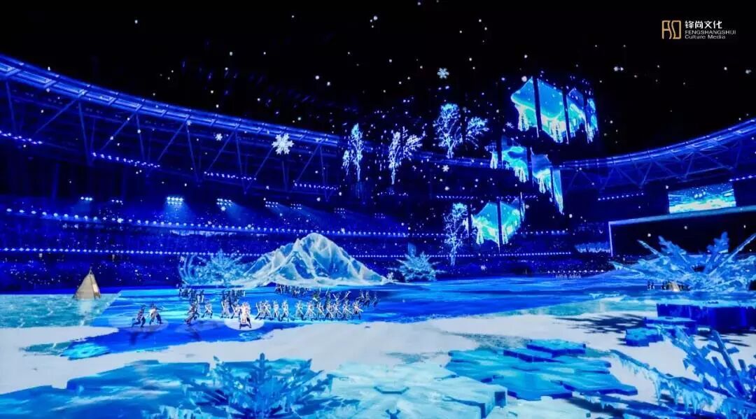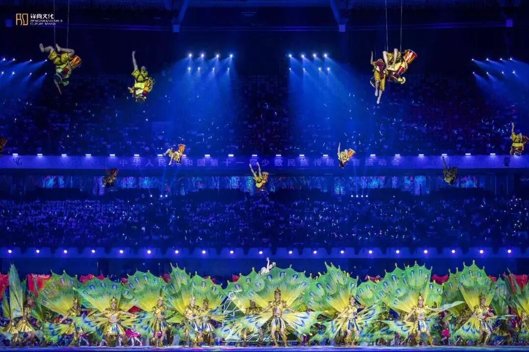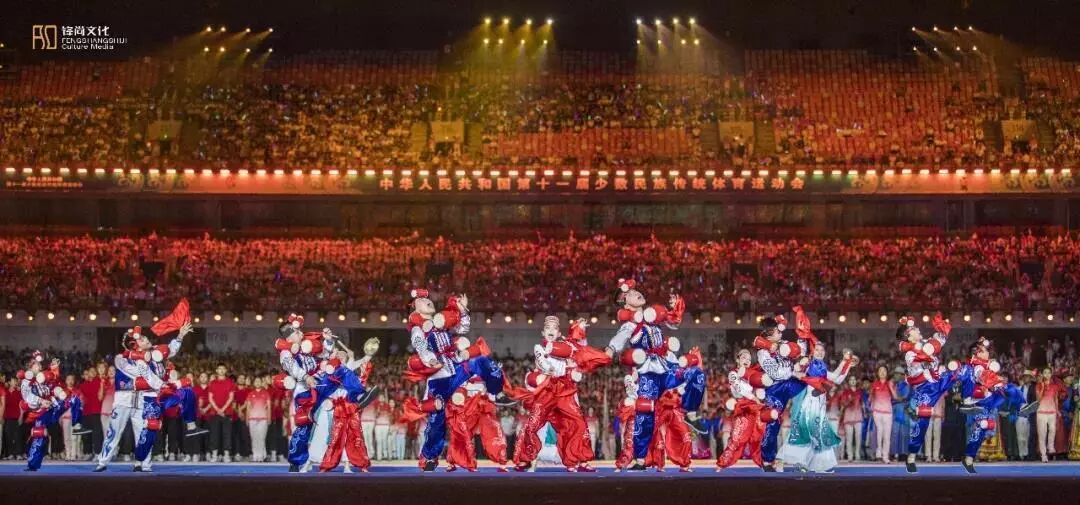 驻停表演是全国少数民族运动会开幕式上独有的,也是最具观赏性的一个环节,也是【锋尚文化】的主创团队创意的重中之重。开幕式现场,观众们欣赏到了陕西代表团红绸飘舞的大秧歌、云南代表团的哈尼族舞蹈、上海代表团的国风油纸伞等,北京代表团则带来了中幡、冰嬉等演出。