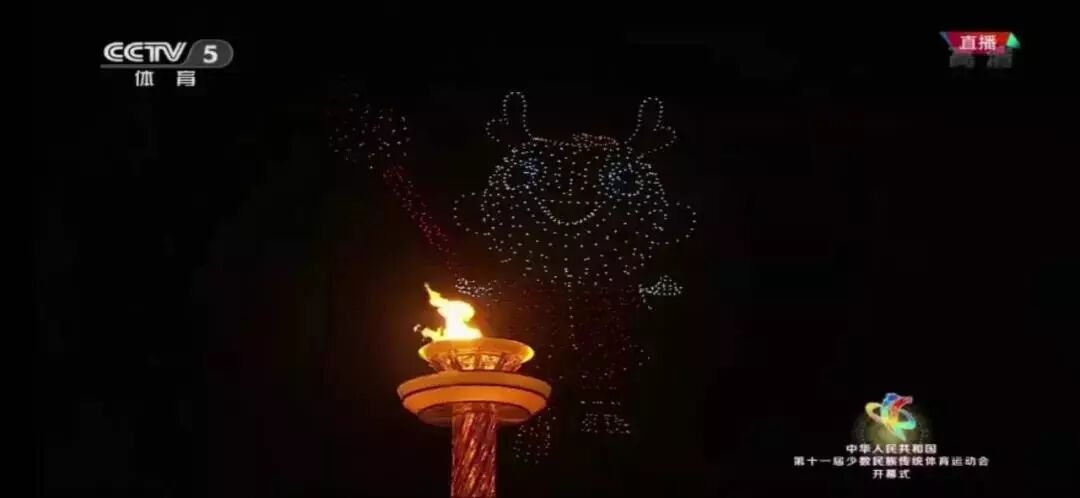 本次运动会开幕式,还采用高巨零度无人机与焰火结合的方式进行了一场新颖出彩的表演。无人机编队以运动会吉祥物“中中”的造型率先亮相,身穿一袭中国红的中中,手持“火把”伴随着《我和我的祖国》悠扬的歌声与大家亲切会面。